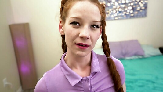 Adorable and adorable ginger-haired teenage gets on her knees to feed on a trunk