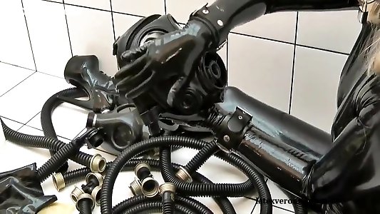 Black Spandex porntiedshare With Gasmask 1