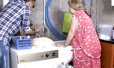 German old Granny Erika 73 entice to Fuck in kitchen by Young Man