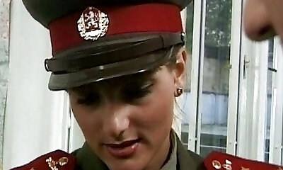 German policewoman pleasing a hard and loaded pipe